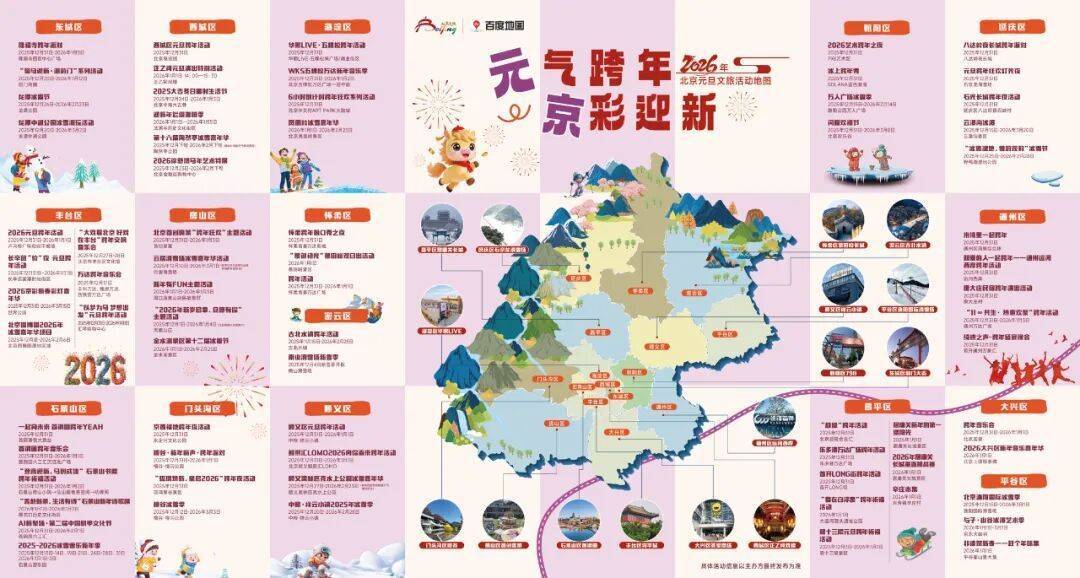 全城跨年攻略已就位!从跨年狂欢到长城晨光,从文化盛宴到冰雪欢歌,这张地图藏着北京的冬日暖意。愿您携亲友而来,共赴京彩之约今日云策,在北京的浪漫与诗意里,遇见最难忘的跨年时光,共同开启2026新年新旅行!
